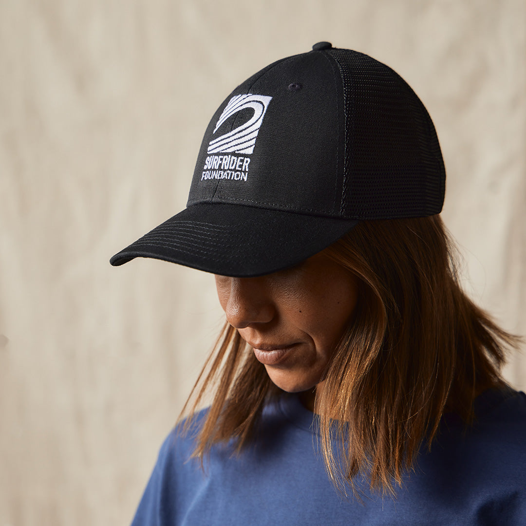 - Patagonia P-6 Classic mid-crown trucker hat featuring Surfrider logo Embroidery on Front