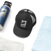 - A organic cotton front, a recycled polyester-mesh back and brim and an adjustable snap closure