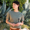 - Unisex pocket tee with print on front and back