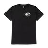 - Unisex black tee with print on front and back
