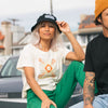 - Womens relaxed-fit tee with print on front