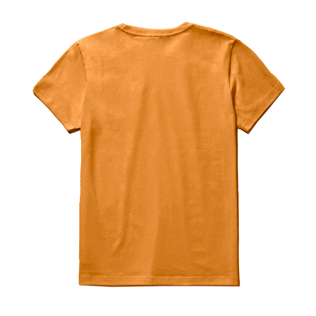 - Unisex gold tee with print on front
