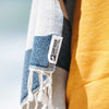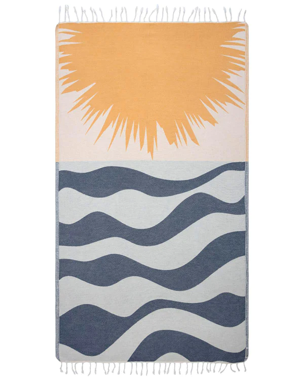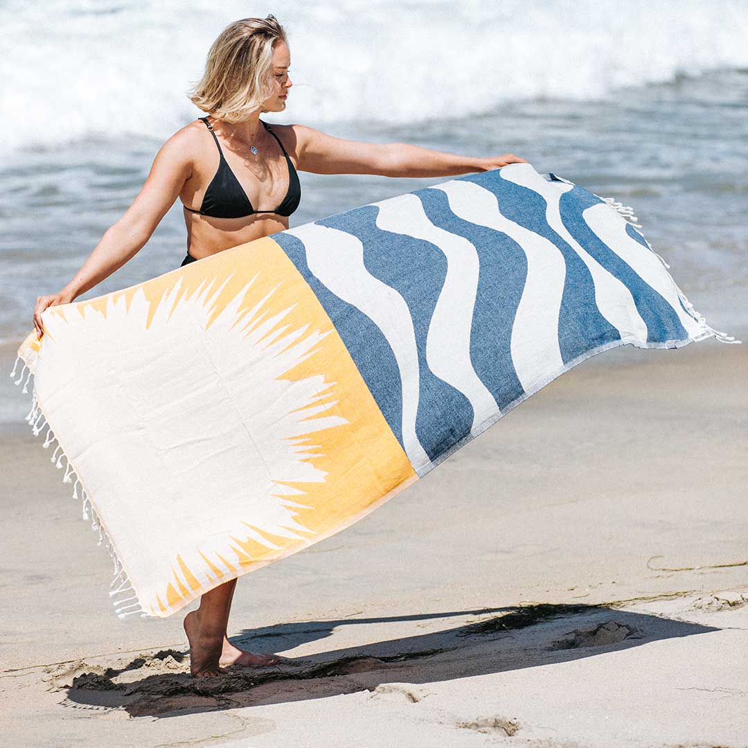 We are proud to partner with our friends at Sand Cloud to bring you this ocean-inspired towel! Inspired by our ocean, waves, and beaches, these organic cotton Turkish towels offer a softer hand feel, a single weave jacquard, and a sand-resistant design. More details below.