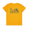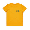- Yellow tee with blue print on front and back