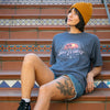 - Unisex anchor slate (blue) tee with To Protect And Surf™ print on front