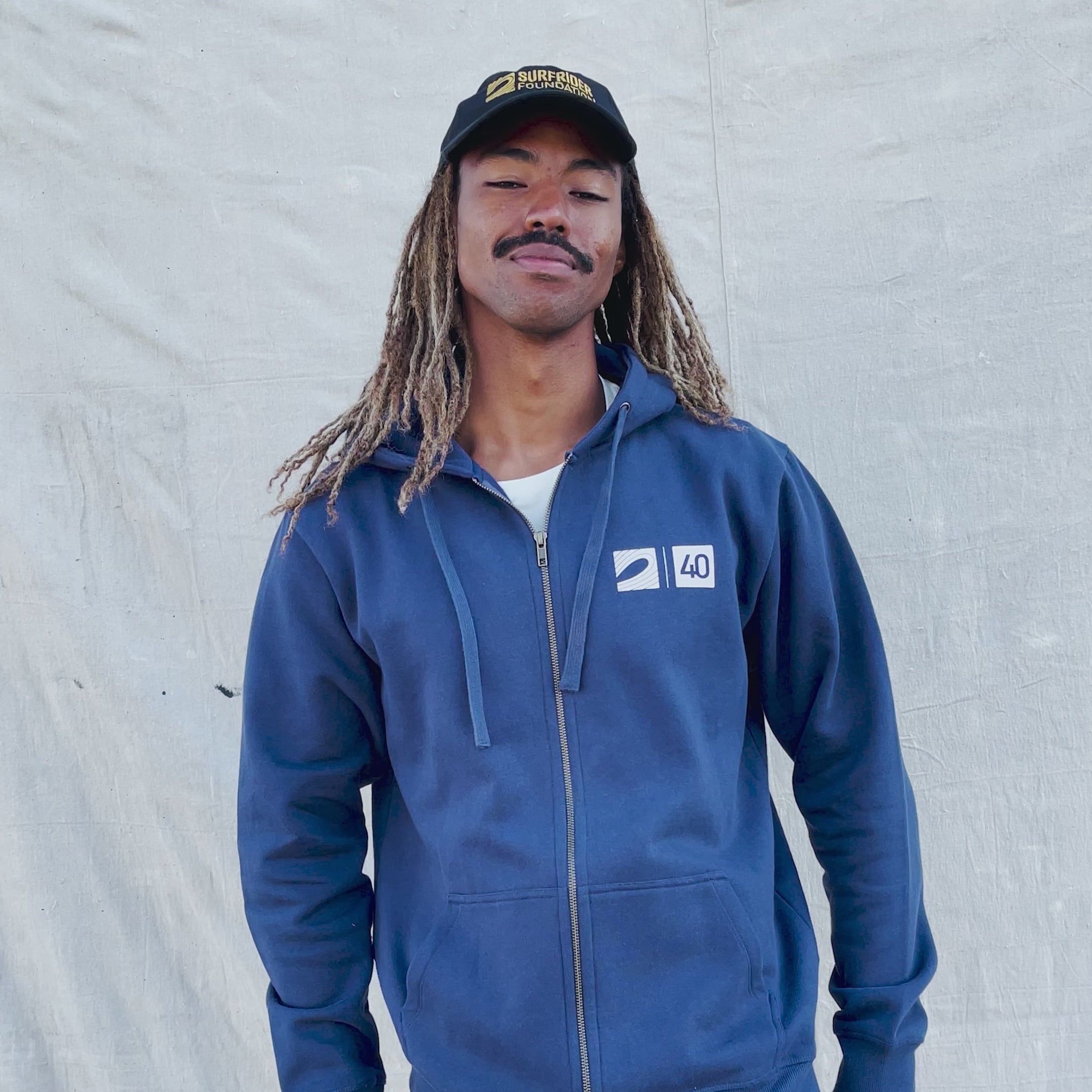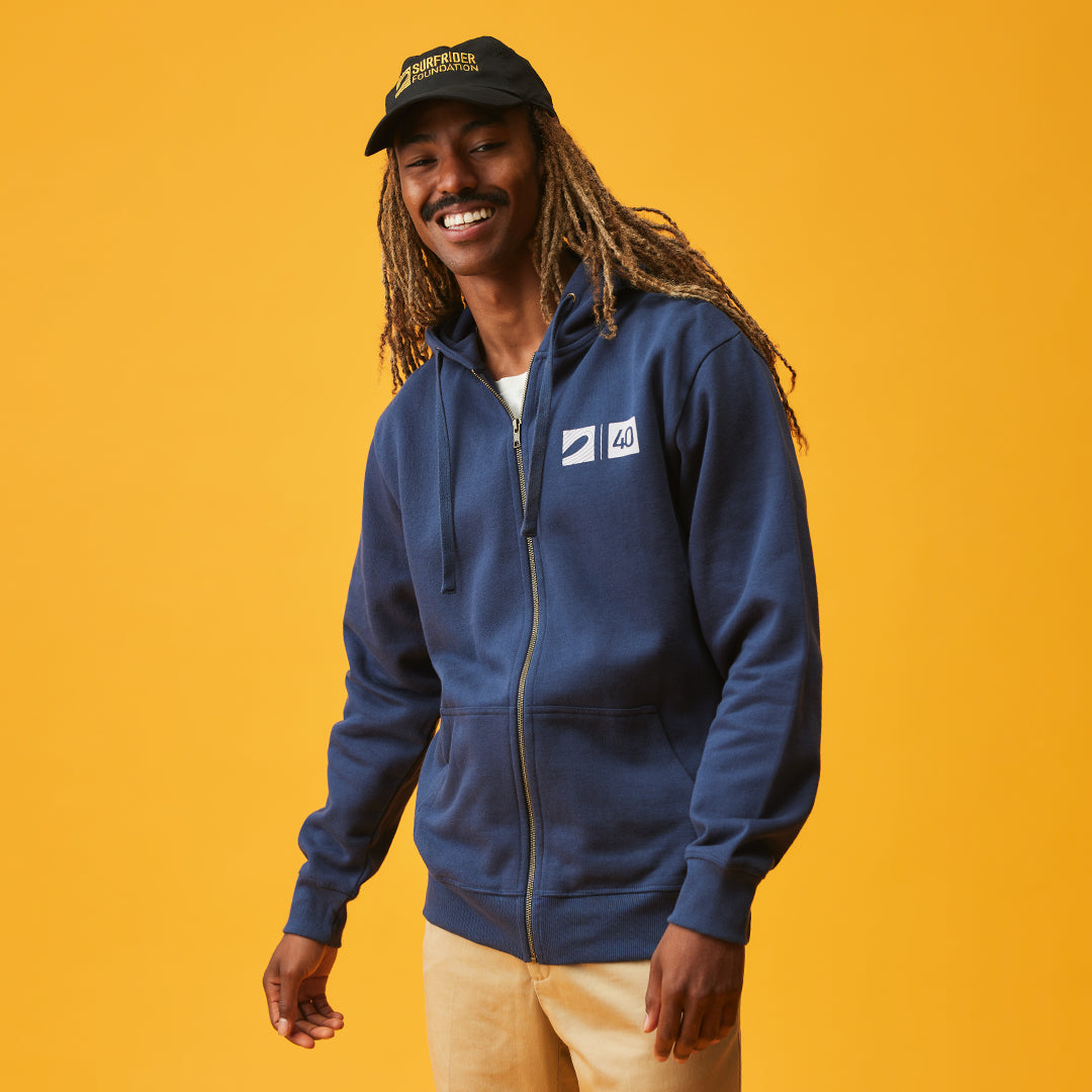 - White Surfrider anniversary emblem on front and Surfrider logo on back